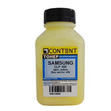 Тонер Content для Samsung CLP 300 Тип 1.1, Y, банка, 45 гр.